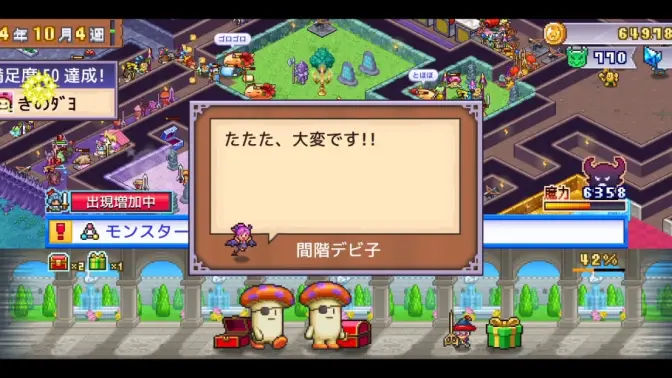通过提供食物和各种用品来培养怪物,帮助它们击败冒险者吧。