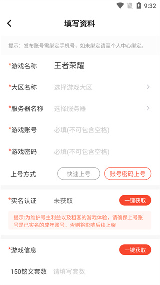 填写账号信息:根据提示填写账号的详细信息,包括游戏名称、账号等级、装备情况、租赁价格等。