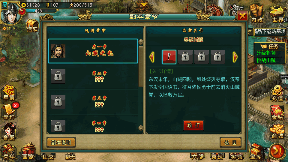然后系统骑刷副本到3,领了奖励,就用招的将,带150重步和弩兵去刷两个弓兵的四五黄!200轻骑从一到三黄开始,刷完,200轻骑一直刷三黄!