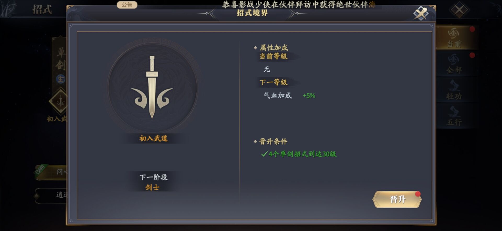 通过『阅历』来提升技能的伤害以及招式效果,一共五个招式,最高可以强化到40级。