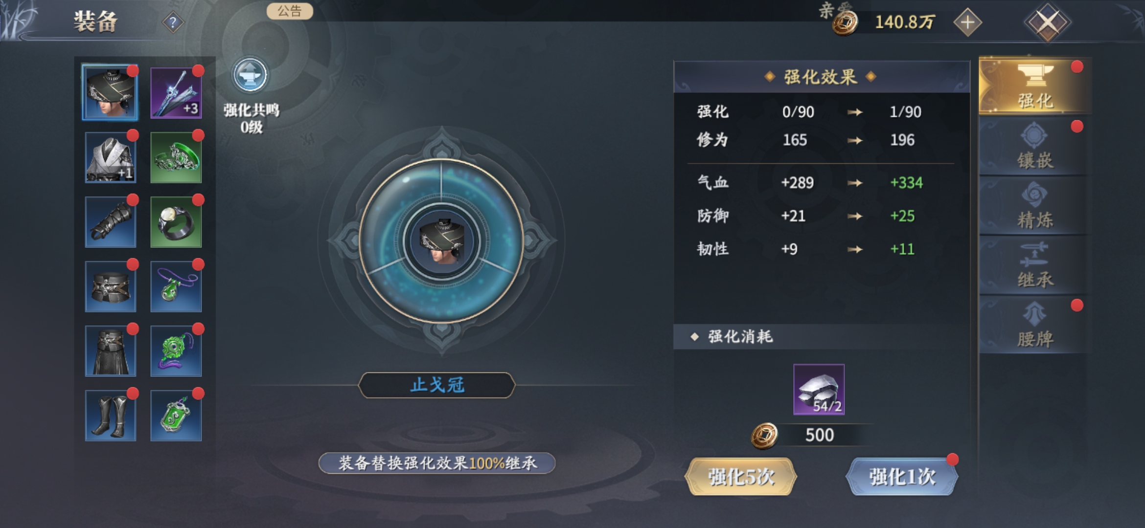 另外装备继承强化效果可以100%继承,这是后话,还有一件事装备好像是不能超过主角等级。