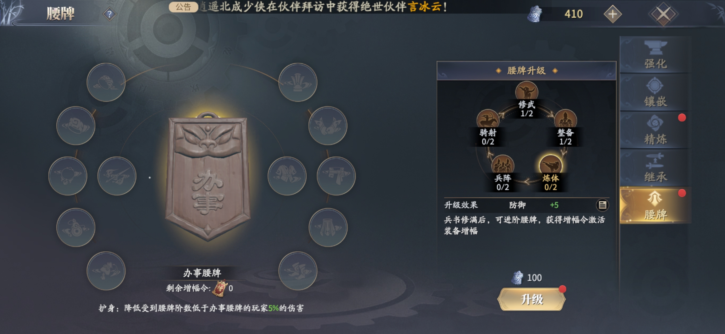 [绿-青云佩:经验加成100]获取:会武,低抽卡,派遣,帮派,商店,异闻。