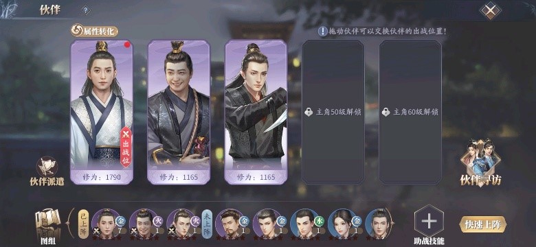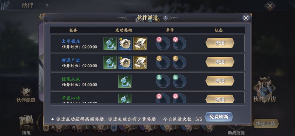 ①可以通过指定要求的伙伴去派遣如性别,国族,势力, 来获取角色升级道具,伙伴碎片,伙伴技能书等。