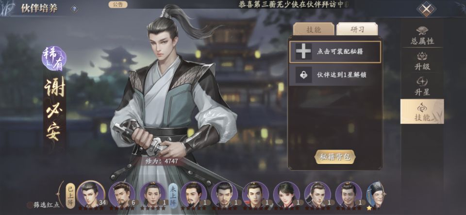 可以通过装配秘籍提升属性,开局开一个位置,升到1星就会开第二个槽。