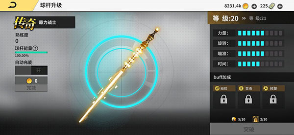 球杆维修说明:玩家每次出杆会减少球杆能量1点,球杆能量为0的时候,必须维修,否则球杆属性会减少为球杆初始属性的50%