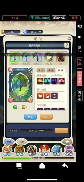 宠物强化也是个非常立竿见影的战力提升方法,尤其更新之后强化技能书可以返还,性价比大升,由于强化技能书只能通过精英BOSS获取,所以也是一个赚钱方法,尤其5/6级强化技能书都是大佬们的最爱。