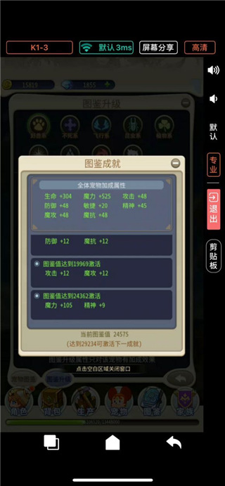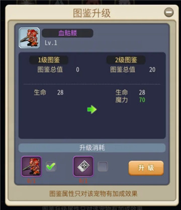 图鉴升级可以增加对应出战宠物的基础属性,也是一个挺值得提升的项目,但是稀缺图鉴的宠物除外(所以为什么地龙、绿鬼、蓝鬼高性价比的原因),一只满50级图鉴的120成长值宠物可以媲美125成长值的宠物。我记得好像是350多张图鉴就可以从0级吃到50级满级。