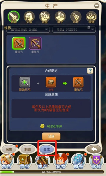 装备的主要获得来源需要通过生产来进行制造,在生产界面会告知制造装备所需要的材料和数量,然后就能制造装备