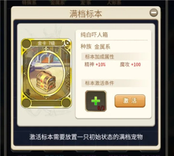 最近更新的一个氪金点,需要存入多余的满档宠物激活相应的属性,所有出战宠物都产生效果,所以提升战力很可观,但也非常耗钱,算是土豪玩家拉开与平民差距的重要指标。