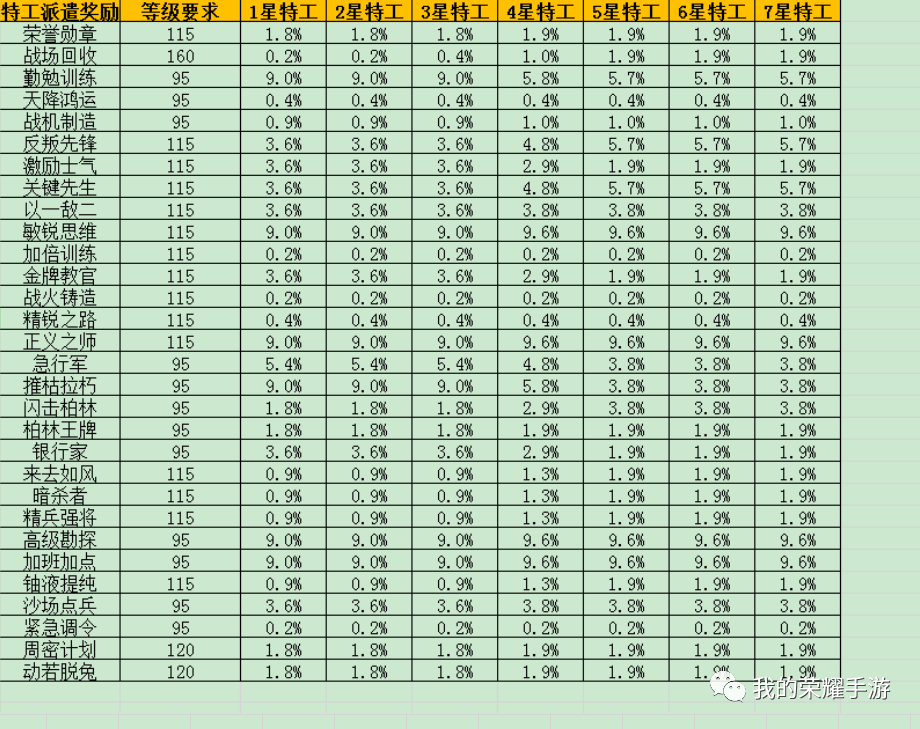 这些情报所带来的增益加成,根据所加成的功能玩法、品质的不同而各有所长。特工等级越高,更容易搜寻到品质稀有的行动。很多指挥官对于搜寻情报的概率可能会些疑问,所以老司令从研发大佬那边获取到了最新的情报概率和内容,可供大家参考~,详情如下: