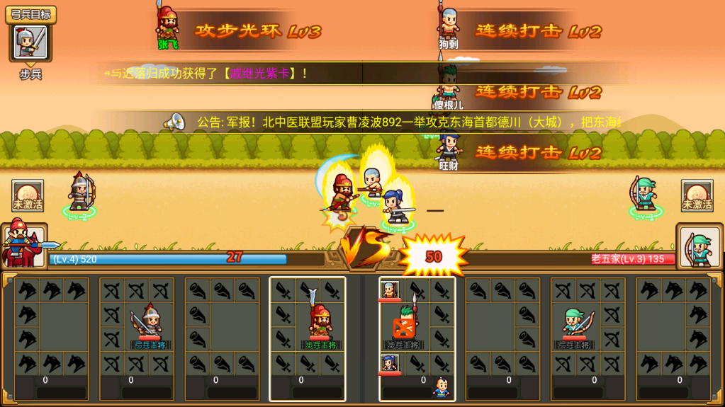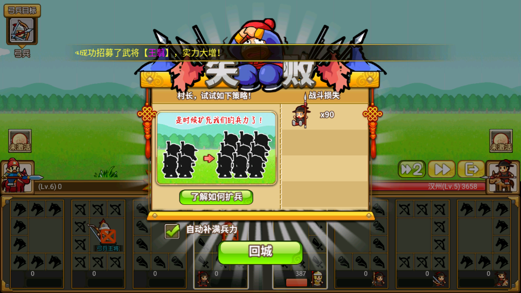 3、新手玩家推荐兵种为:汉,全套兵种,如果没有汉弓,暂时用七天签到第二天的秦弓,过渡用。