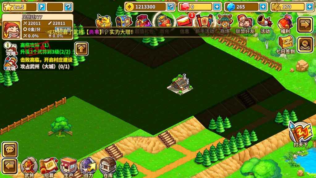 游戏采用“任务驱动型”新手引导,前10级任务以村庄经营为主,例如“建造5座农田”“升级粮仓至2级”“招募10名农民”,完成任务可获得金币、资源包等奖励,同时解锁建筑升级、道路连接等基础操作。10级后任务转向战争模块,例如“招募1名武将”“完成1次战役”“解锁1种特色兵种”,引导玩家了解兵种克制、阵型调整等进阶玩法。这种设计避免了信息过载,让玩家逐步掌握游戏核心机制。