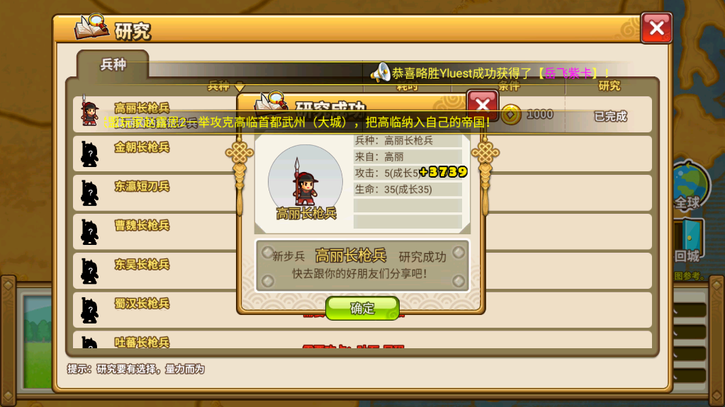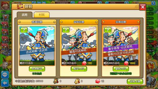 2、前期存下蓝钻,每打过一次普通和精英关,任务奖励能获得蓝钻,每打过一次精英关,攒够蓝钻,即可从宝殿购买兵种:汉步,汉炮,汉骑等。