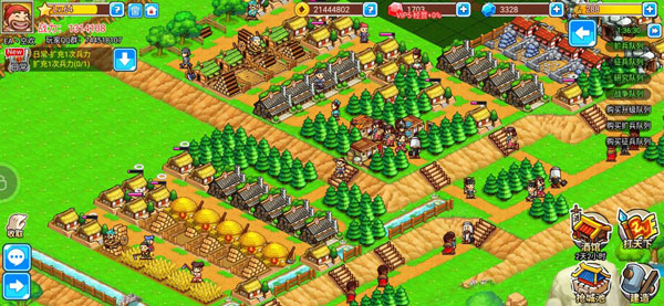 《小小村长》采用经典的2.5D像素画风,但通过3D引擎的渲染优化,赋予了像素块更立体的光影效果与动态细节。游戏中的建筑、角色、地形均以高精度像素模型呈现,例如农田的麦浪随风摇曳、矿洞的矿石闪烁微光、村民劳作时的动作模组丰富多样,既保留了像素艺术的复古质感,又避免了粗糙感。角色设计方面,Q版化的三国名将与特色兵种堪称一大亮点:诸葛亮摇着羽扇指挥作战时,身后会浮现八卦阵特效;吕布骑乘赤兔马冲锋时,马鬃会随动作飞扬;高丽弓箭手射箭时会有明显的拉弓蓄力动画,这些细节让像素角色充满生命力。