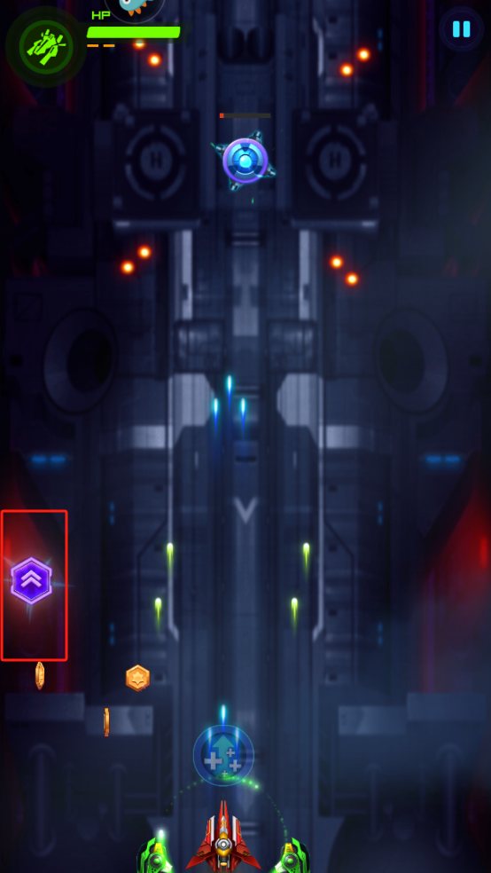 4、松开屏幕游戏自动进入子弹时间,这是可以放技能清理地方飞机或者给己方飞机加血加盾;