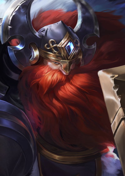 风暴群山的王者,重锤巨盾盾的持有者,他是勇猛的战士,亦是强大的前锋。对敌人的仇恨即是山丘之王奋战的不竭动力,当他高举“山丘怒盾”时,免疫一切负面效果,所有没有人能撼动王者的进攻。因此,山丘之王是一位适合放置在前阵,发挥其强大辅助作用的英雄。