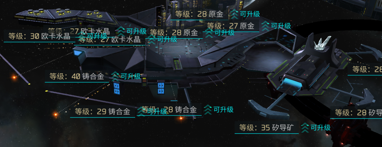 空间站最左边的矿场主要作用是自动收集资源。方便了大家在没空肝资源的时候,依然会有资源入账。