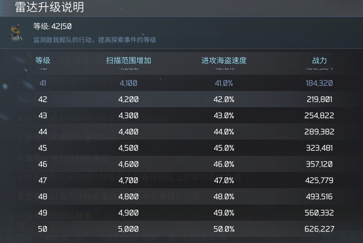 高等级的雷达,可以提升“探索事件”的等级,同时增加扫描范围(以空间站为原点)加快进攻海盗的速度。在前中后期,对玩家用来肝海盗刷材料的提升是非常大的。