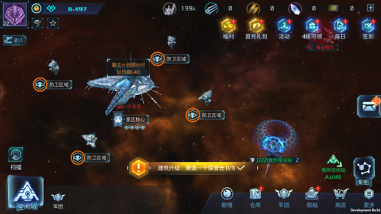 发展的核心在于建造太空基地,而由独立舰船组成、支持多维度装配的舰队,则是远征与作战的关键力量。值得一提的是,游戏真实模拟大规模集结战,因此找到盟友、组建军团,成为争夺主权的必由之路。