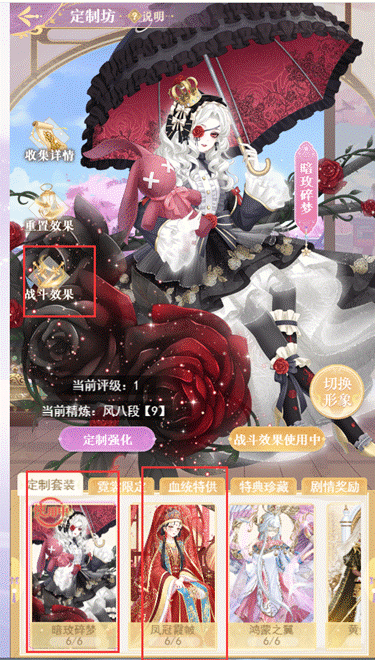收集整套6心定制装扮后可以使用该装扮的战斗效果,同时可以定制强化,提高战斗效果,精炼需要消耗与子同袍,开了同袍系统的陛下才有哦