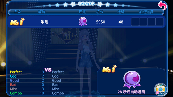 7、歌曲结束后,失误次数越少,连击数越多,最后得分也就越高。