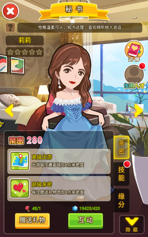 那么提高秘书的经验和亲密度又有什么用呢?答案:提高你人才的赚钱速度啊!