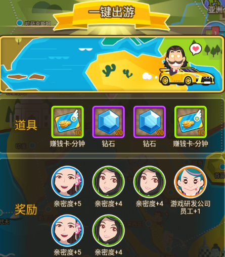 点击一键出游可以迅速收获一大堆丰厚奖励,这样的旅行我喜欢!