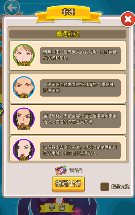 因为去不同地区旅行可以解锁该区域的秘书好感,如果你的行程还没到你喜欢的那个秘书的地区,又想急着跟她邂逅加亲密度,那么就可以点开右上角的地图,使用【指定出行卡】来前往该地区旅行!