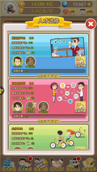 企业合作的话,可以选择自己发起合作或者是与对方公司合作,合作成功能够获得升级企业的卡片,与相同类型的企业合作,更能获得翻倍奖励!