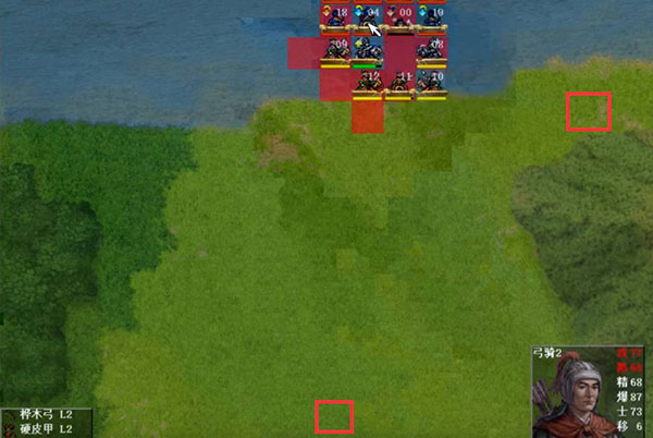 第三回合出场,但因中埋伏全体下降士气,不过我军上方的敌人会混乱,(主角虽然现在能力不行,不过手下还是杠杠的)先把上面清理掉。