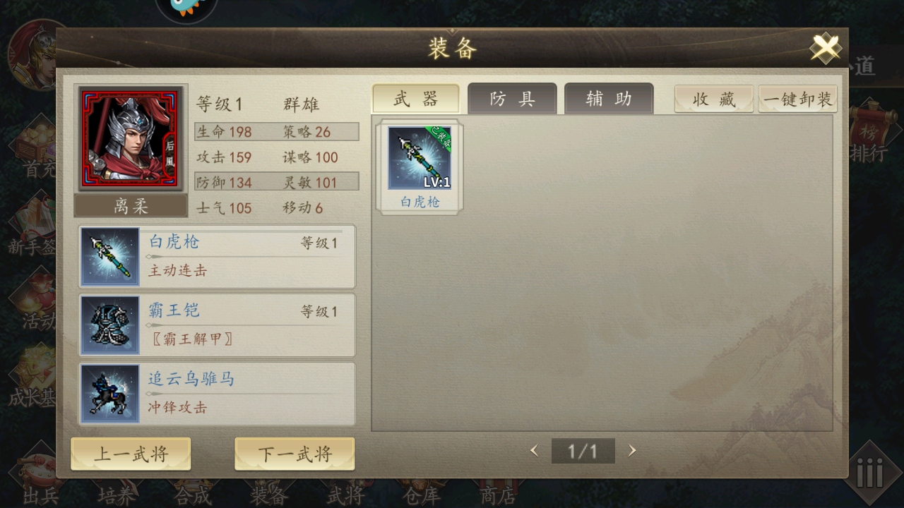 单挑:离骄—杨兴(必须触发第三关离骄与杨兴的单挑,杨兴退,得紫金护卫铠)