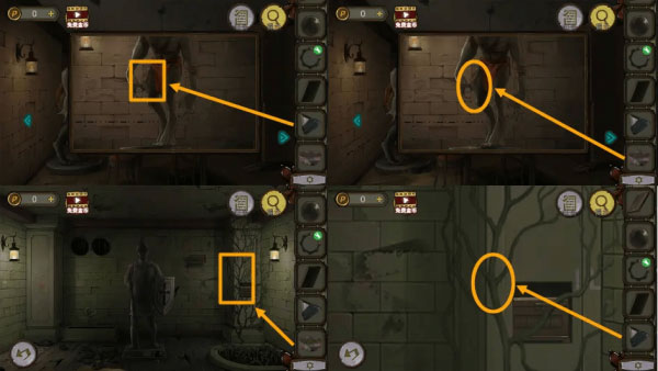 18、用锤子敲碎过道的墙壁,拿到磁铁,把床底下的钥匙拿出来,打开左边的房间。