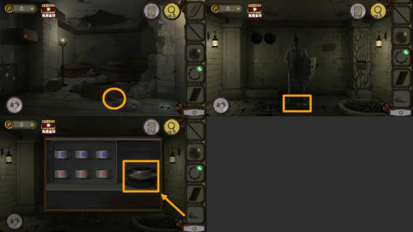 41、去书房用转盘打开地上保险柜,拿到齿轮刀。用胶水组合,得到完整的齿轮刀。