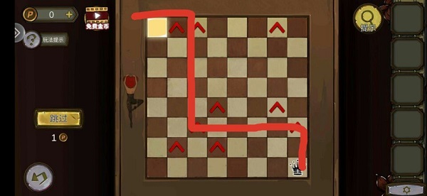 6、玩家用狗粮罐头喂狗,可以拿到棋子,将棋子放棋盘上,然后调整箭头让棋子到终点,拿到钥匙。