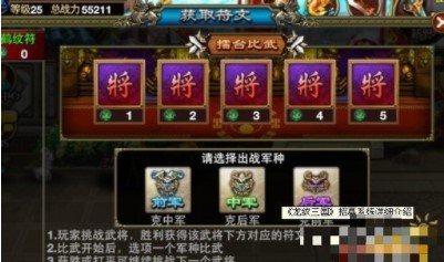 不得不说龙纹三国的游戏系统设定得非常丰富,玩家可以通过小游戏擂台比武来获取鶴纹符招募更强力的武将哦。