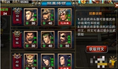 (2)招募武将需要消耗对应的符文,符文可以通过擂台比武获取。