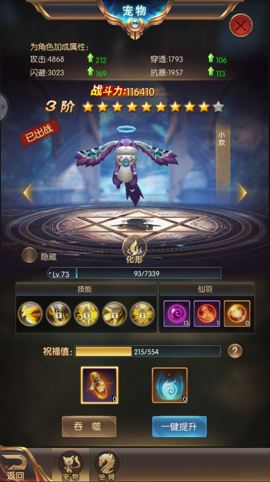 宠物在成长到一定时候能进行阶的提升,从而有更炫酷的外形。