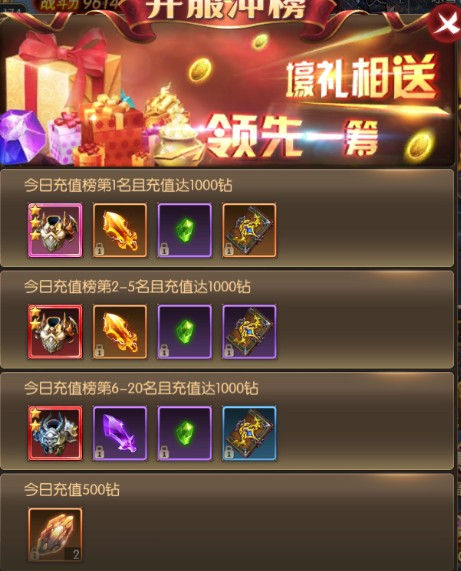 而且充值越多奖励越丰富,至于各位充值多少就看你们对战力提升的需要程度啦。