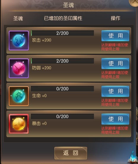 除了通过圣印强化,还可以通过圣魂来增加圣印的属性,而圣魂可以在领地商店中获取。