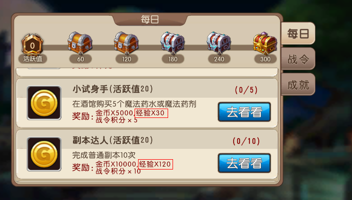当新手引导结束后,玩家便可以去完成每日任务。完成每日任务可以获取大量玩家经验。使玩家等级光速升级至20级!