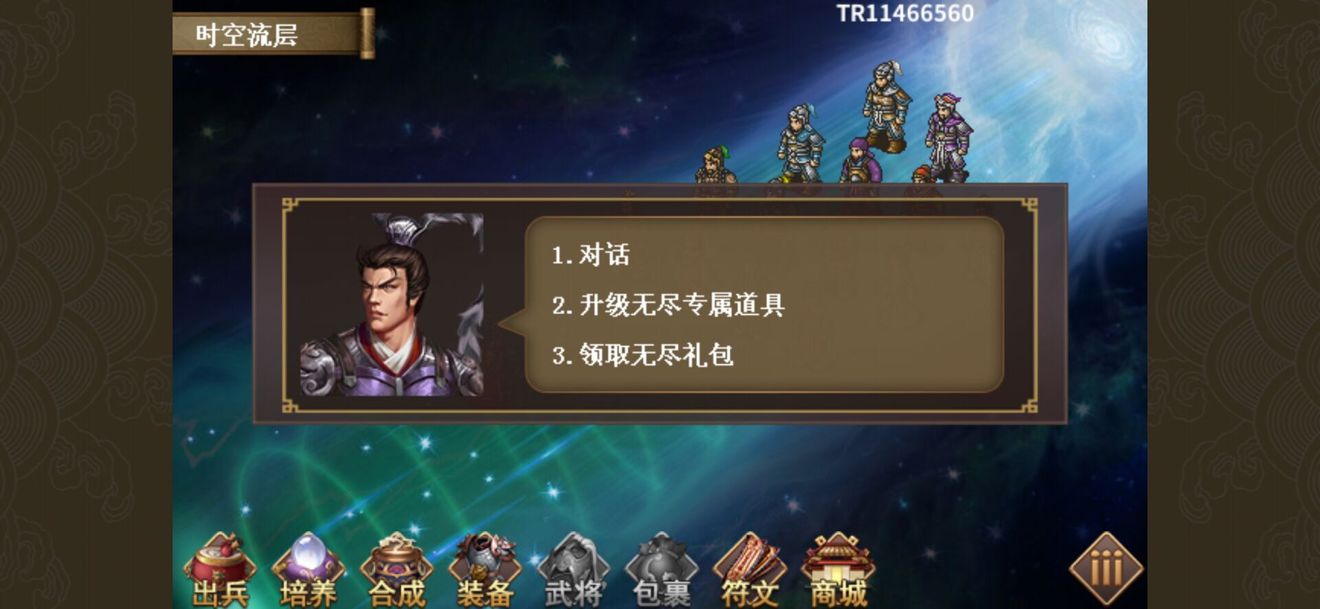 4、新手推荐试试无尽模式,过了第10关就有很不错的一个礼包赠送,有昆吾剑和元宝。后续30、50、100、150...也有礼包赠送。已有大量0氪玩家打到50层,得到吕布高阶武器无双方天戟,不同模式关卡掉落仅限当前存档有效,但是礼包赠送的道具是可以所有存档通用的,从礼包界面领取即可。