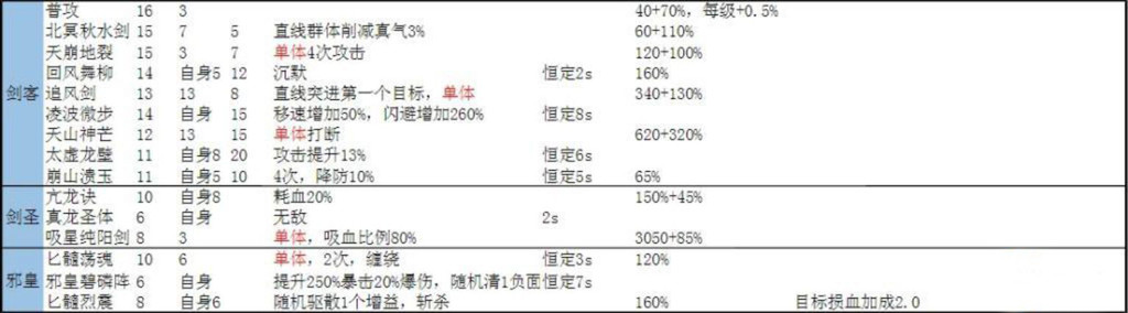 数值都是1级时候的,攻击技能每级提升1.1%比例,固定值不详,减速技能每级提升0.5%,增益技能每级提升0.6%大概。