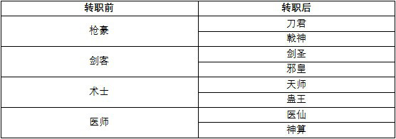 转职职业列表如下: