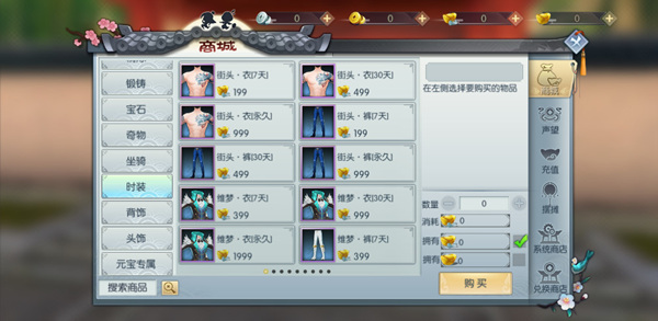 时装可到商城中购买,点击界面右上角“商城”,选择“时装”分页,即可查看时装商城界面!