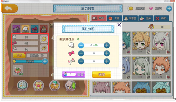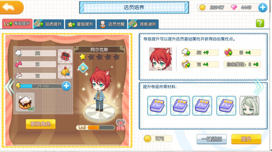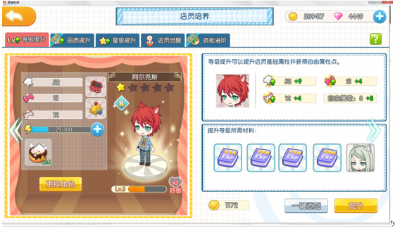 想要培养出一名各项指标全满的店员需要店长的爱与栽培,当然你可以雨露均沾也可以独宠一人,身为店里的老大,就是这么任性。