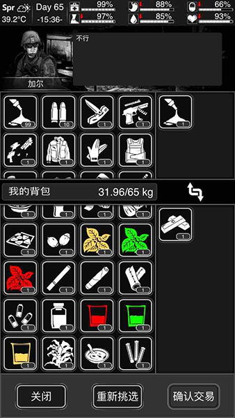 2、加尔,最大的奸商,喜欢药品交易巨亏,推荐兑换步枪零件合成老式步枪,然后升级大口径老式步枪。