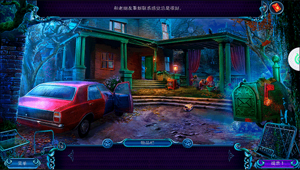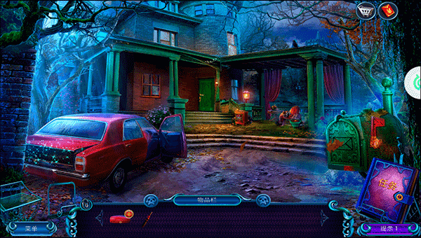车里的包获得笔记,任务,眼镜盒,伞。后备厢寻物游戏,得到油壶。用油壶给邮箱把手润滑,获得天线(拉开,得到加长天线)、拼图碎片1/2、螺丝刀。用雨伞撑起窗户玻璃,用天线挑到锅铲。用锅铲挖出猫旁边花盆的泥土,找到钥匙。用钥匙开门,进去。
