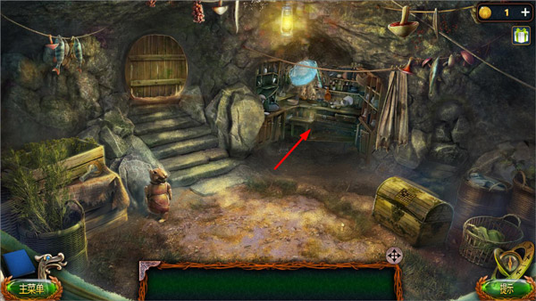 5、再次点击齿轮,调为红色,返回点击桌子,得到提示