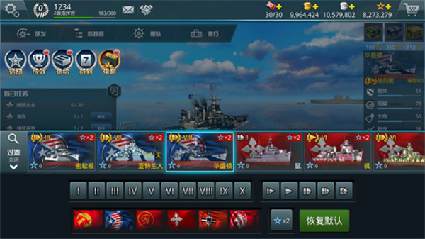 1、在大家完成了一系列的新手指引后,我们会获得两艘3级金币战舰呦,一艘为苏联巡洋舰阿芙乐尔,一艘为U-1潜艇,如果有玩家进行了首冲,还可以额外获得一艘永久的中系三级巡洋舰宁海号!