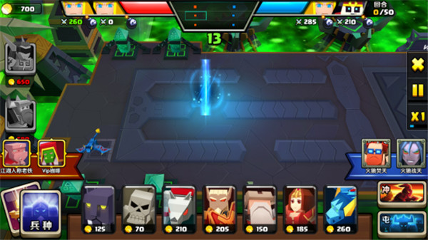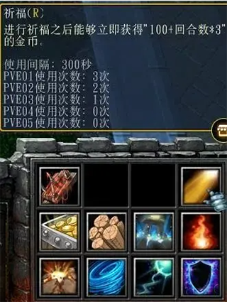 游戏开始的时候我们有七百块钱,PVE01、PVE02、PVE03(以下简称P1-P5)都有金币祈福的福利,其中P1是三次,P2是两次,P3是一次,这就决定了很多我们在PVP中第一波甚至第二波都造不出来的兵,在PVE中都可以拿来开局。